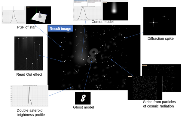 Systém simuluje, ako by kamery a senzory pozorovali vesmír v reálnych podmienkach — pričom zohľadňuje optiku, šum, pohyb satelitu a okolité prostredie.