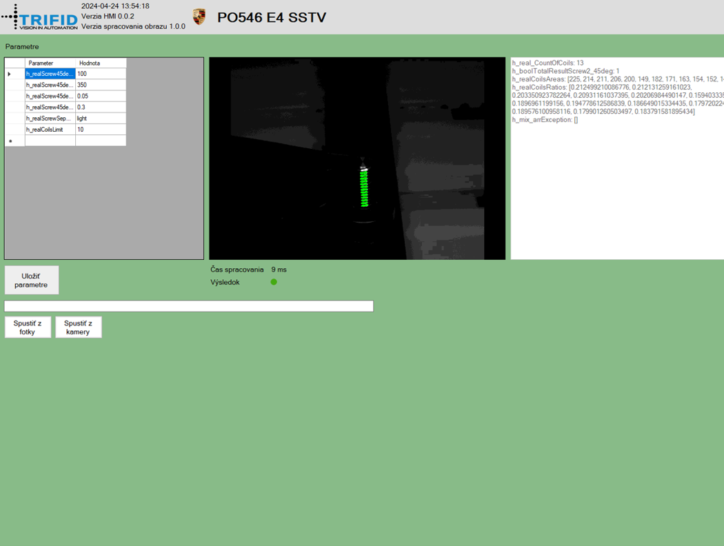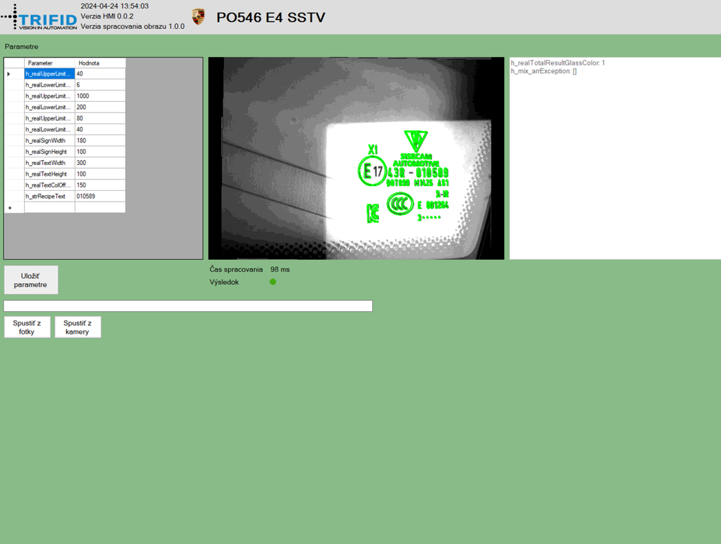 HMI je navrhnuté tak, aby používateľovi umožnilo rýchle a jednoduché nastavenie nových receptúr, prehliadanie archívu výsledkov, kontrolu signálov odoslaných alebo prijatých z PLC a zobrazenie živého obrazu z kamery. Systém zároveň ukladá fotografie každého defektu a zaznamenáva logy programu do databázy, čo zjednodušuje overovanie stavu aplikácie.